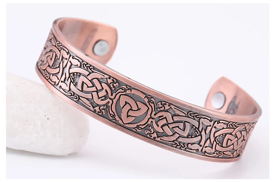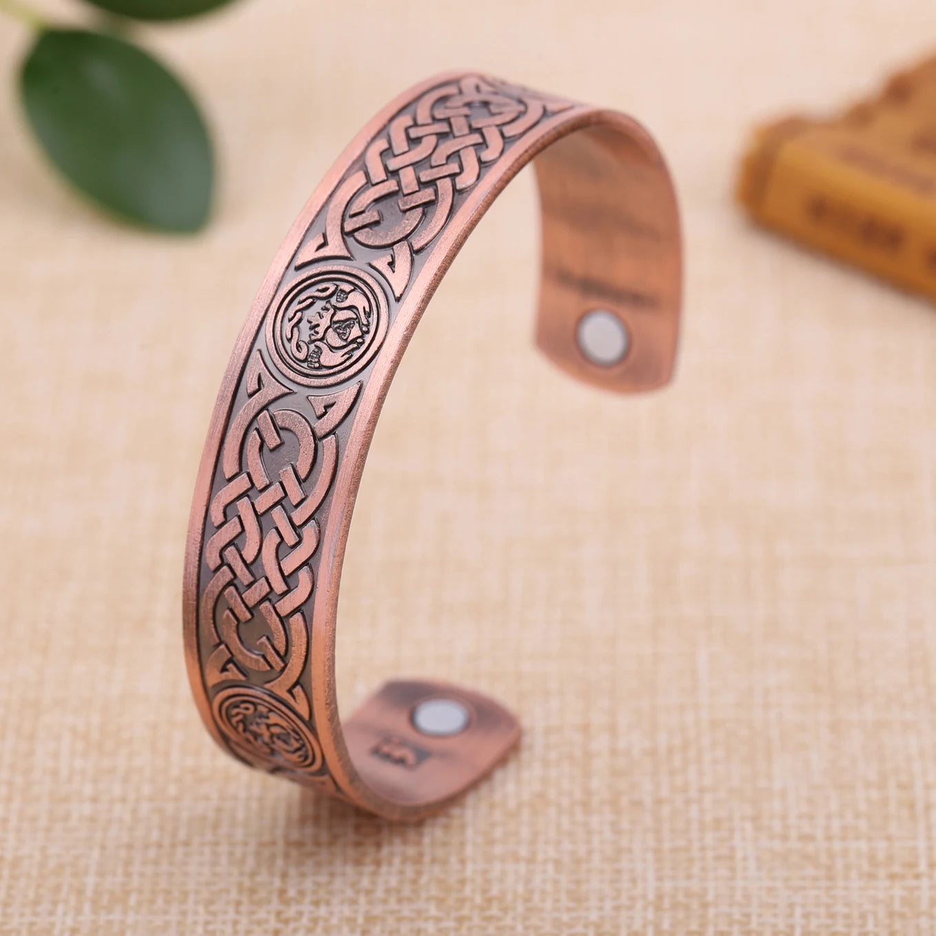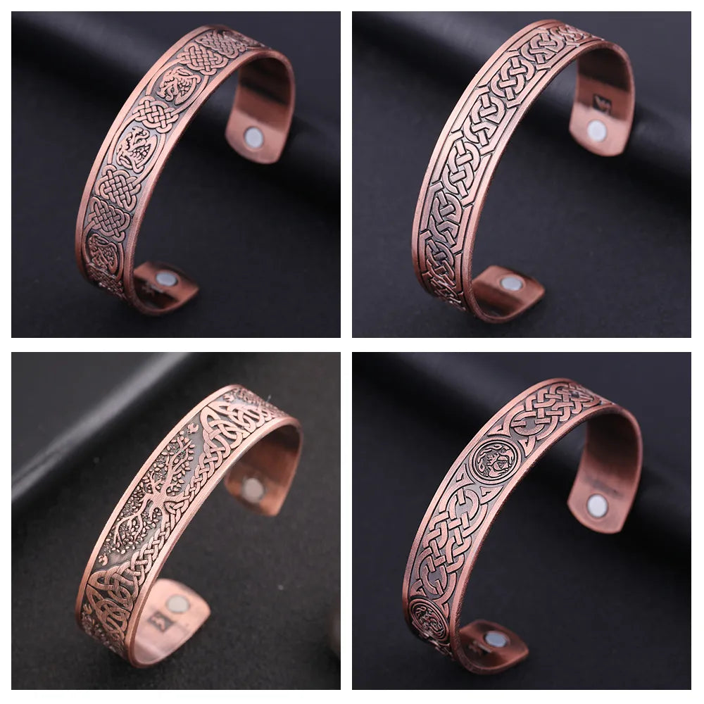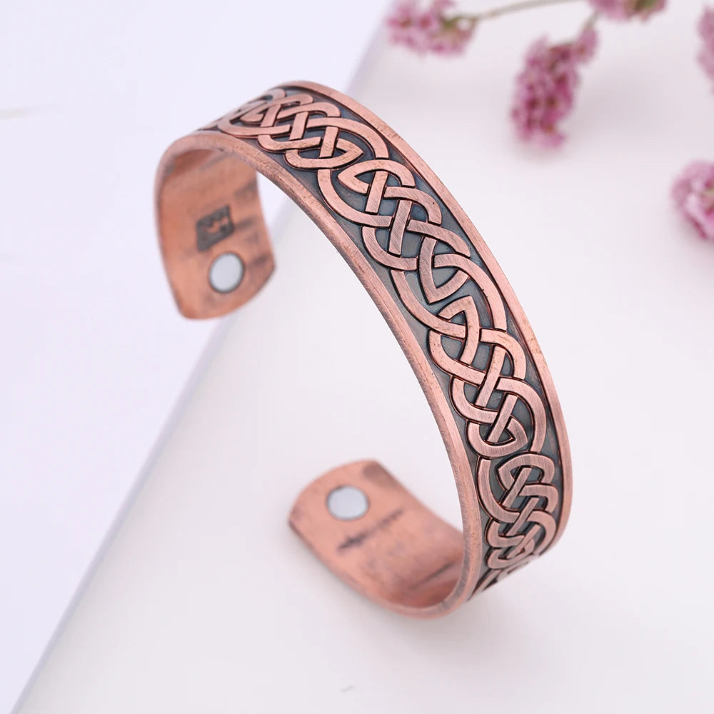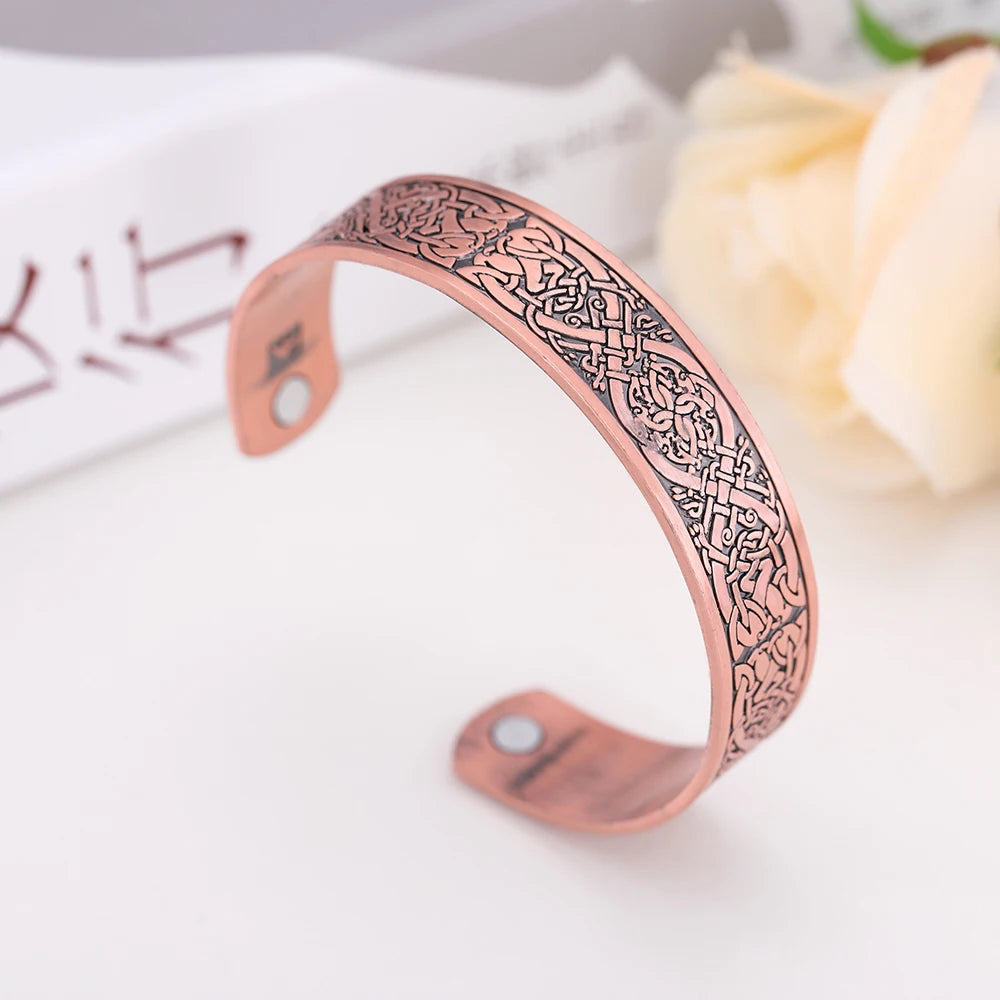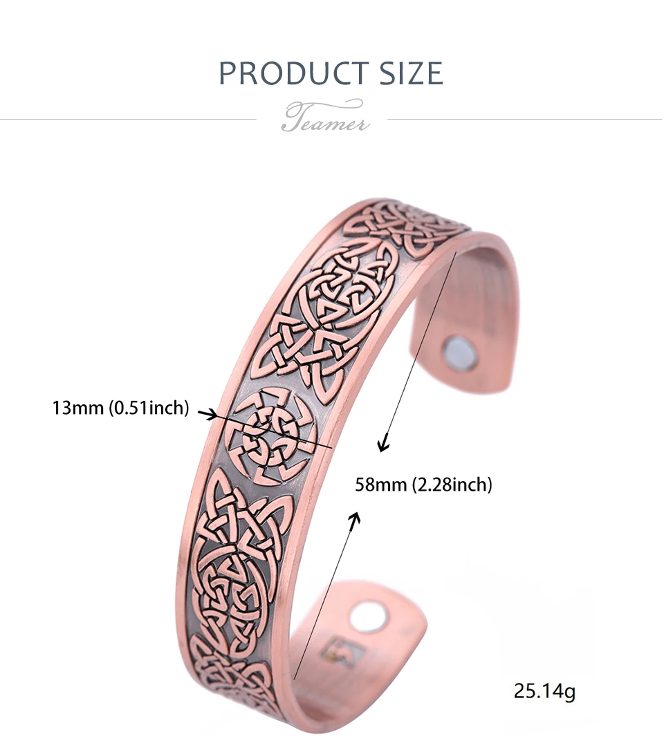 Experience the timeless elegance and intricate detail of our Celtic Knot Copper Cuff Bracelet. Choose from 15 unique patterns, each one featuring vintage copper metal and a weight of 24.1g (0.053lb) with a diameter of 62mm (2.44inch). Enhance your style with this beautiful and versatile accessory.