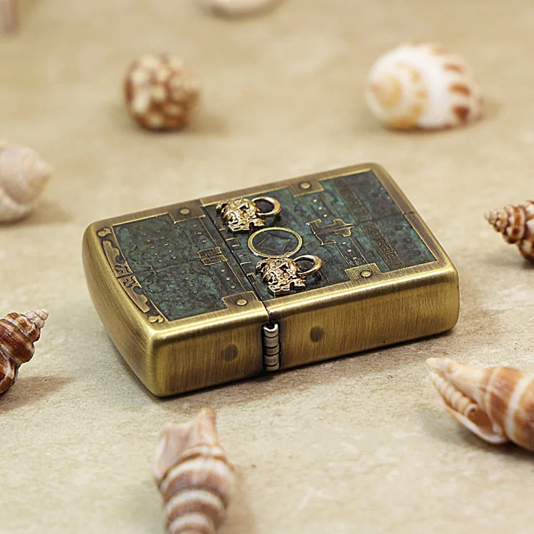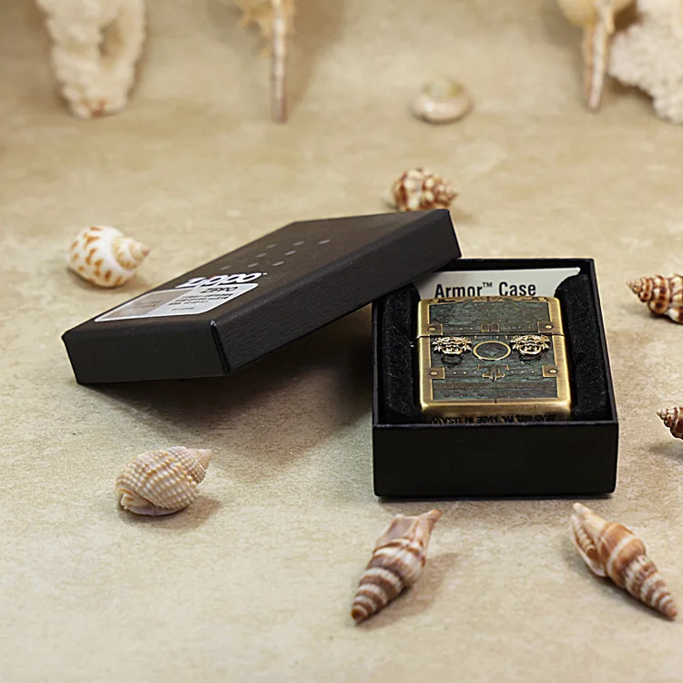 Experience the powerful and timeless design of the Genuine Zippo Antique Chest Pattern Lighter. Made by the renowned brand, Zippo, and crafted in the USA with the model number RF-168, this metal lighter boasts a windproof feature that sets it apart from the rest. Perfect for lighting your cigarettes with ease and style.