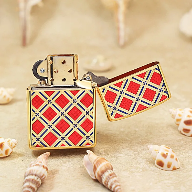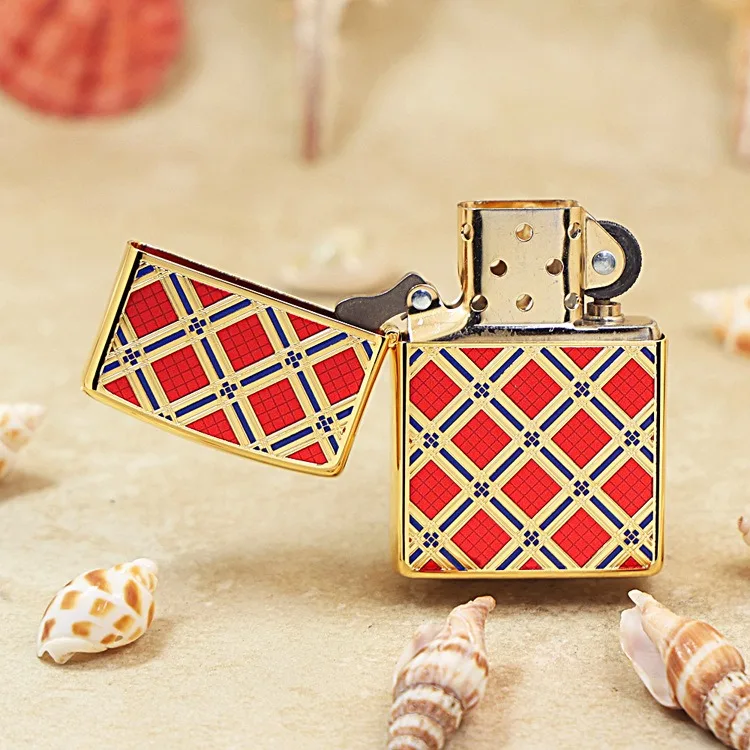Genuine Zippo Red Diamond Grid Pattern Lighter