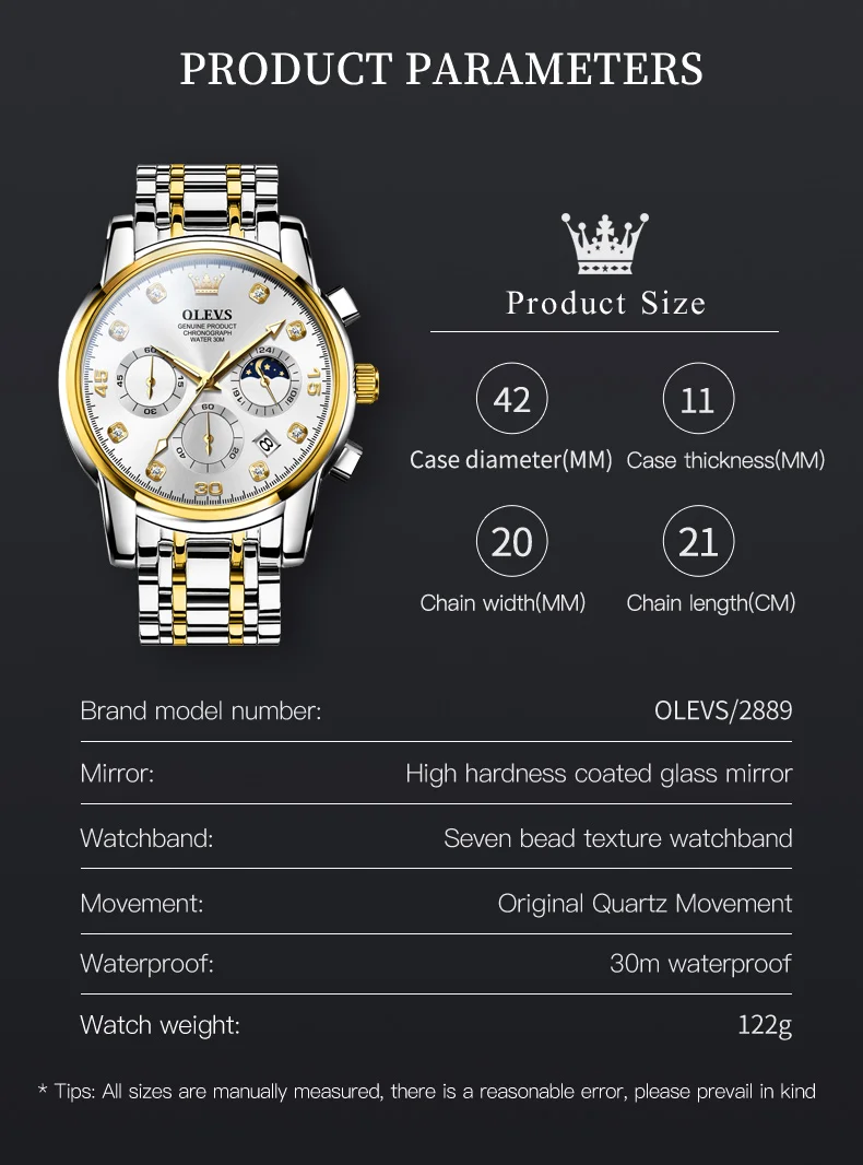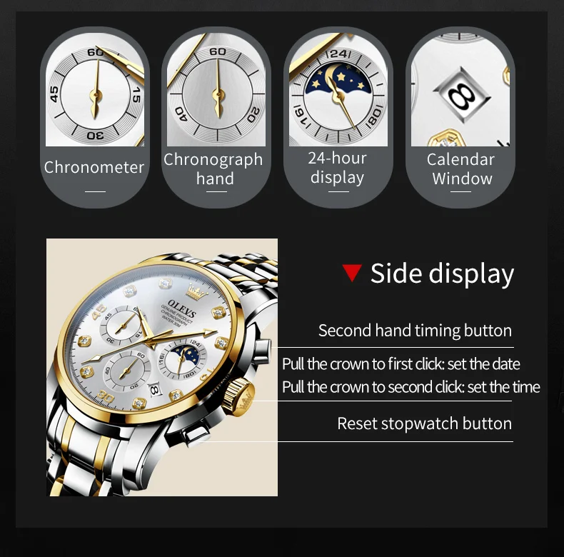 Original OLEVS Quartz Watch for Men Chronograph Luminous Waterpoof Stainless Steel Classic Business Male Wristwatch 2889